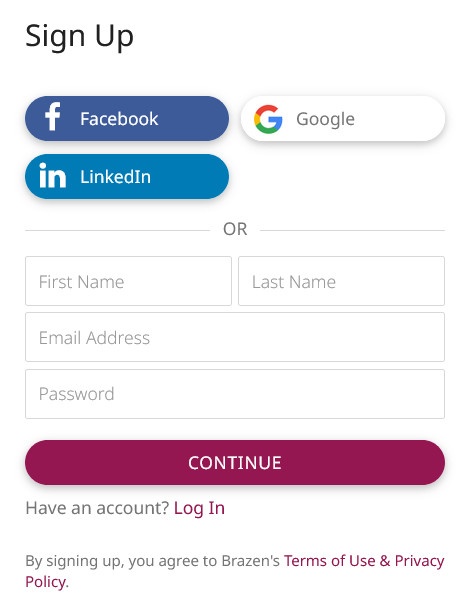 Log In to your Brazen account with your existing credentials and complete your profile!